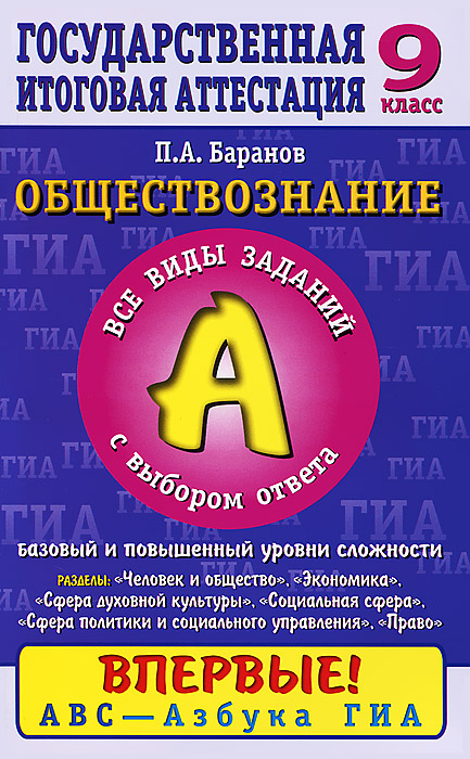 | Полное название книги | П. А. Баранов Обществознание. 9 класс. Часть 1 |