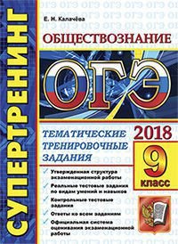 | Полное название книги | Е. Н. Калачева Обществознание. 9 класс. ОГЭ 2018. Супертренинг. Тематические тренировочные задания |