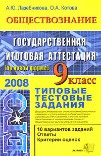 | Полное название книги | А. Ю. Лазебникова, О. А. Котова Обществознание. 9 класс. Типовые тестовые задания |
