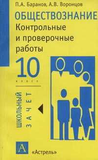 | Полное название книги | А. В. Воронцов, П. А. Баранов Обществознание. Контрольные и проверочные работы. 10 класс |