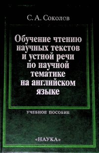 | Полное название книги | С. А. Соколов Обучение чтению научных текстов и устной речи по научной тематике на английском языке: Учебное пособие |