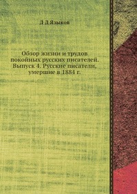 | Полное название книги | Д. Д. Языков Обзор жизни и трудов покойных русских писателей. Выпуск 4. Русские писатели, умершие в 1884 г |
