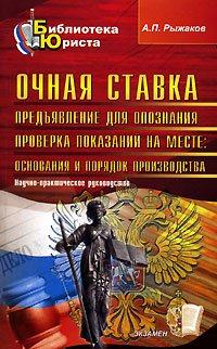 | Полное название книги | А. П. Рыжаков Очная ставка. Предъявление для опознания. Проверка показаний на месте. Основания и порядок производства |