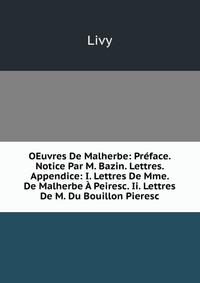 | Полное название книги | Livy OEuvres De Malherbe: Preface. Notice Par M. Bazin. Lettres. Appendice: I. Lettres De Mme. De Malherbe A Peiresc. Ii. Lettres De M. Du Bouillon Pieresc |