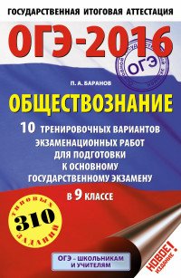 | Полное название книги | П. А. Баранов ОГЭ-2016. Обществознание (60х90/16) 10 тренировочных вариантов экзаменационных работ для подготовки к основному государственному экзамену в 9 классе |