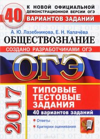 | Полное название книги | А. Ю. Лазебникова, Е. Н. Калачева ОГЭ 2017. Обществознание. Типовые тестовые задания. 40 вариантов заданий |