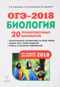 | Полное название книги | С. И. Колесников, А. А. Кириленко, Е. В. Даденко ОГЭ-2018. Биология. 9 класс. 20 тренировочных вариантов |