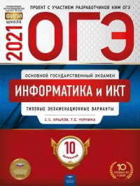 | Полное название книги | Татьяна Евгеньевна Чуркина, Сергей Иванович Крылов ОГЭ 2021 Информатика и ИКТ. Типовые экзаменационные варианты. 10 вариантов |