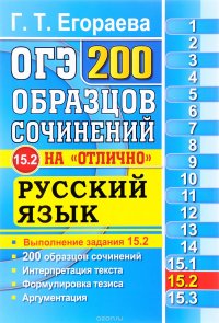 | Полное название книги | Г. Т. Егораева ОГЭ. Русский язык. Задание 15.2. 200 образцов сочинений на "отлично" |