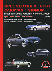 Руководство содержит общие сведения об устройстве автомобилей Opel Vectra С / GTS / Caravan / Signum с бензиновыми двигателями 1,6/1,8/2,0/2,2 л и дизельными двигателями 2,0/2,2/3,0 л с 2002 г. и их модификаций, рекомендации по эксплуатации и техническому обслуживанию, описание возможных неисправностей двигателя, трансмиссии, ходовой части, рулевого управления, тормозной системы. Советы, приведенные в данном руководстве, помогут провести ТО и сделать ремонт как на станции технического обслуживания, так и своими силами.