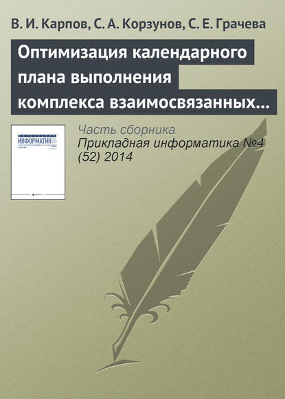 | Полное название книги | В. И. Карпов, С. А. Корзунов, С. Е. Грачева Оптимизация календарного плана выполнения комплекса взаимосвязанных работ в системе поддержки принятия решений |