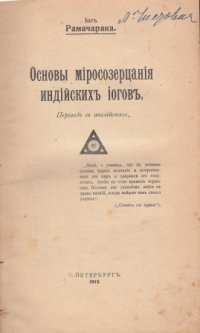 | Полное название книги | Рамачарака (Аткинсон Вильям) Основы миросозерцания индийских йогов |
