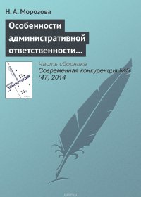 | Полное название книги | Н. А. Морозова Особенности административной ответственности за нарушение антимонопольного законодательства |