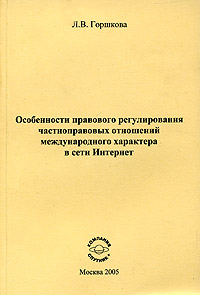 | Полное название книги | Л. В. Горшкова Особенности правового регулирования частноправовых отношений международного характера в сети Интернет |