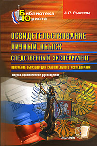 | Полное название книги | А. П. Рыжаков Освидетельствование. Личный обыск. Следственный эксперимент. Получение образцов для сравнительного исследования |