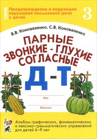 | Полное название книги | С. В. Коноваленко, В. В. Коноваленко Парные звонкие - глухие согласные Д-Т. Альбом графических, фонематических и лексико-грамматических упражнений для детей 6-9 лет |