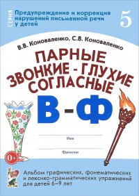 | Полное название книги | С. В. Коноваленко, В. В. Коноваленко Парные звонкие - глухие согласные В - Ф. Альбом графических, фонематических и лексико-грамматических упражнений для детей 6-9 лет |