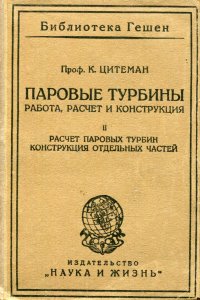 | Полное название книги | Цитеман Константин Паровые турбины. Работа, расчет, конструкция. Том II. Расчет паровых турбин. Конструкция отдельный частей |
