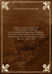 | Полное название книги | Д. Н. Бантыш-Каменский Переписка между Россией и Польшей по 1700 год, составленная по дипломатическим бумагам Управлявшим Московским архивом коллегии иностранных дел. Часть 1. 1487-1584 |