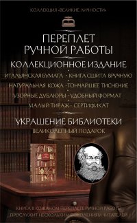 В каждом экземпляре - избранные цитаты и гравированный портрет автора, отпечатанные на дизайнерской бумаге, изготовленной на четверть из натуральной кожи. Переплеты созданы по традиционной для 19 века технологии из гладкой натуральной кожи и украшены тремя видами рельефного тиснения - золотым, рельефным и красочным.