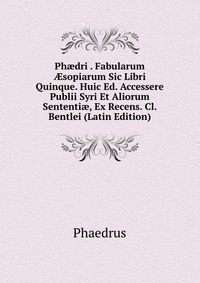 | Полное название книги | Phaedrus Ph?dri . Fabularum ?sopiarum Sic Libri Quinque. Huic Ed. Accessere Publii Syri Et Aliorum Sententi?, Ex Recens. Cl. Bentlei (Latin Edition) |