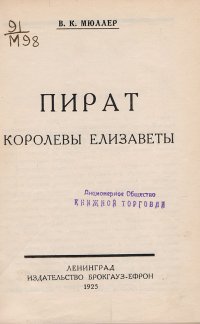| Полное название книги | Мюллер Владимир Карлович Пират королевы Елизаветы |