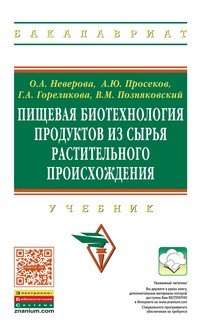 | Полное название книги | О. А. Неверова, Г. А. Гореликова, В. М. Позняковский, А. Ю. Просекова Пищевая биотехнология продуктов из сырья растительного происхождения. Учебник |