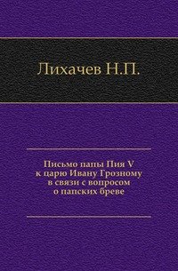 | Полное название книги | Н. П. Лихачев Письмо папы Пия V к царю Ивану Грозному в связи с вопросом о папских бреве |