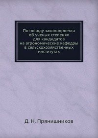 | Полное название книги | Д. Н. Прянишников По поводу законопроекта об ученых степенях для кандидатов на агрономические кафедры в сельскохозяйственных институтах |