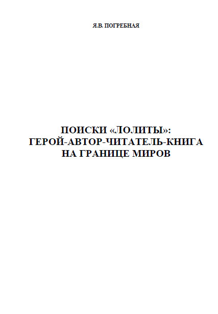 | Полное название книги | Я. В. Погребная Поиски "Лолиты". Герой-автор-читатель-книга на границе миров |