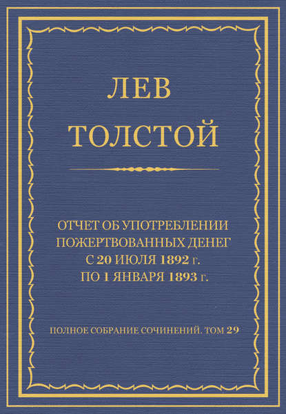 | Полное название книги | Лев Николаевич Толстой Полное собрание сочинений. Том 29. Произведения 1891–1894 гг. Отчет об употреблении пожертвованных денег с 20 июля 1892 г. по 1 января 1893 г. |
