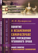 | Полное название книги | П. П. Пусторослев Понятие о незаменимой саморасправе как учреждении уголовного права. Общее понятие о необходимой самообороне |
