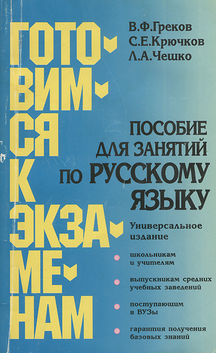 | Полное название книги | С. Е. Крючков, В. Ф. Греков, Л. А. Чешко Пособие для занятий по русскому языку |