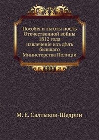 | Полное название книги | М. Е. Салтыков-Щедрин Пособия и льготы после Отечественной войны 1812 года |