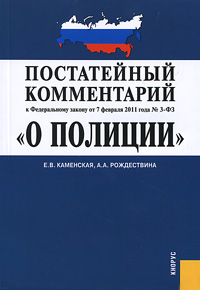 | Полное название книги | А. А. Рождествина, Е. В. Каменская Постатейный комментарий к Федеральному закону "О полиции" |