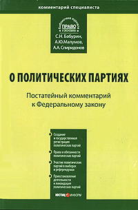 | Полное название книги | А. Ю. Малумов, А. А. Спиридонов, С. Н. Бабурин Постатейный комментарий к Федеральному Закону "О политических партиях" |