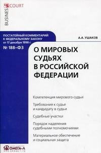 | Полное название книги | А. А. Ушаков Постатейный комментарий к Федеральному закону от 17 декабря 1998 г. №188-ФЗ "О мировых судьях в Российской Федерации" |