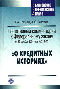 | Полное название книги | Г. А. Тосунян, А. Ю. Викулин Постатейный комментарий к Федеральному закону от 30 декабря 2004 года № 218-ФЗ "О кредитных историях" |