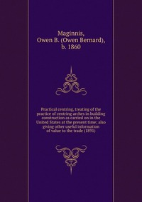 | Полное название книги | b. 1860, Maginnis, Owen B. (Owen Bernard) Practical centring, treating of the practice of centring arches in building construction as carried on in the United States at the present time; also giving other useful information of value |