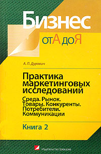 | Полное название книги | А. П. Дурович Практика маркетинговых исследований. В 2 книгах. Книга 2. Среда. Рынок. Товары. Конкуренты. Потребители. Коммуникации |