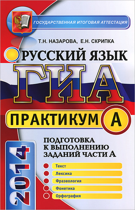| Полное название книги | Т. Н. Назарова, Е. Н. Скрипка Практикум по русскому языку. Подготовка к выполнению заданий части А |