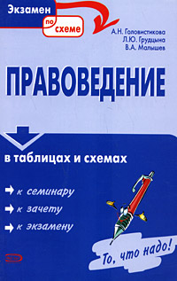 | Полное название книги | В. А. Малышев, А. Н. Головистикова, Л. Ю. Грудцына Правоведение в таблицах и схемах |