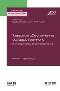 | Полное название книги | Наталия Федоровна Попова Правовое обеспечение государственного и муниципального управления. Учебник и практикум для академического бакалавриата |