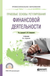 | Полное название книги | Е. М. Ашмарина Правовые основы регулирования финансовой деятельности. Учебник для СПО |