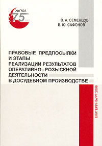 | Полное название книги | В. Ю. Сафонов, В. А. Семенцов Правовые предпосылки и этапы реализации результатов оперативно-розыскной деятельности в досудебном производстве |