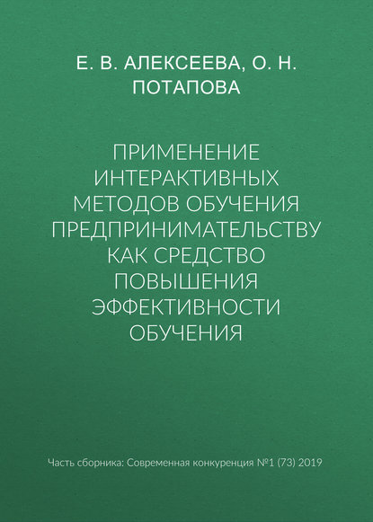 | Полное название книги | Е. В. Алексеева, Ольга Николаевна Потапова Применение интерактивных методов обучения предпринимательству как средство повышения эффективности обучения |