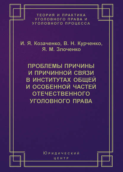 | Полное название книги | Яков Михайлович Злоченко, Иван Яковлевич Козаченко, Вячеслав Николаевич Курченко Проблемы причины и причинной связи в институтах Общей и Особенной частей отечественного уголовного права |