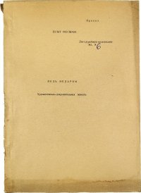 Проект рукописи неопубликованной повести Б. ОкуджавыОкуджава, Б. Ведь недаром. Художественно-документальная повесть.372 с. 29 х 20,5 см. В шрифтовой издательской обложке. Утрата фрагментов корешка. Тираж 40 экз. Экземпляр для служебного пользования № 6. С приложением Приглашения на заседание Общественного совета московских писателей на бланке издательства политической литературы «Политиздат» от 30 октября 1970 г. со следующим текстом: « Уважаемый Феликс Феодосьевич! В ноябре (точную дату мы сообщим Вам дополнительно) состоится заседание Общественного совета московских писателей при Главной редакции Политиздата с целью обсуждения вышедших книг серии и рукописи Б. Окуджавы „Ведь недаром“. Просим Вас принять участие в этом заседании. Посылаем Вам рукопись». . Провенанс: Экземпляр Феликса Феодосьевича Кузнецова (род. 1931) — советского и российского литературоведа, литературного критика, специалиста в области истории русской и советской литературы, члена-корреспондента АН СССР с 23 декабря 1987 года по Отделению литературы и языка (литературоведение), директора Института мировой литературы имени А.М. Горького РАН до 2005 года. Представляет музейную ценность Это и многое другое вы найдете в книге Проект рукописи неопубликованной повести Булата Окуджавы (Б. Окуджава)