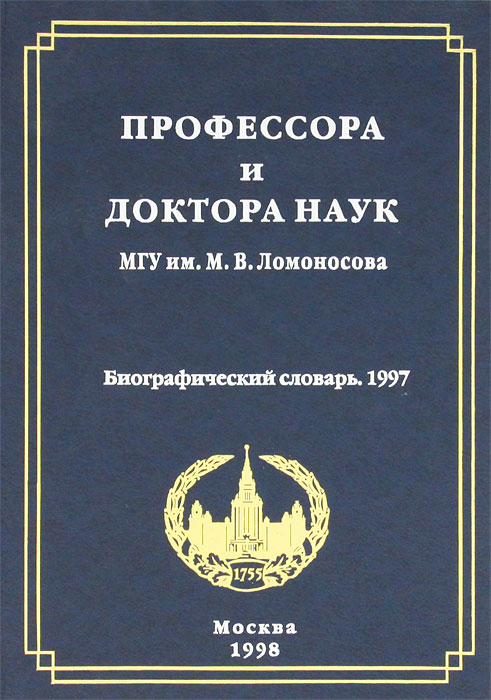 | Полное название книги | А. Ю. Гримза, Е. В. Ильченко Профессора и доктора наук Московского государственного университета им. М. В. Ломоносова. Биографический словарь. 1997 год |