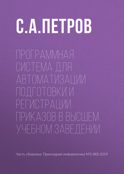| Полное название книги | С. А. Петров Программная система для автоматизации подготовки и регистрации приказов в высшем учебном заведении |